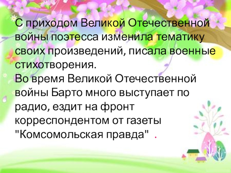 В 1942 году ушла на фронт фронтовым корреспондентом..