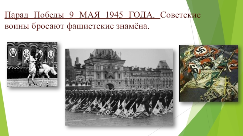 Слайд 4Парад Победы 9 МАЯ 1945 ГОДА. Советские воины бросают фашистские знамёна.