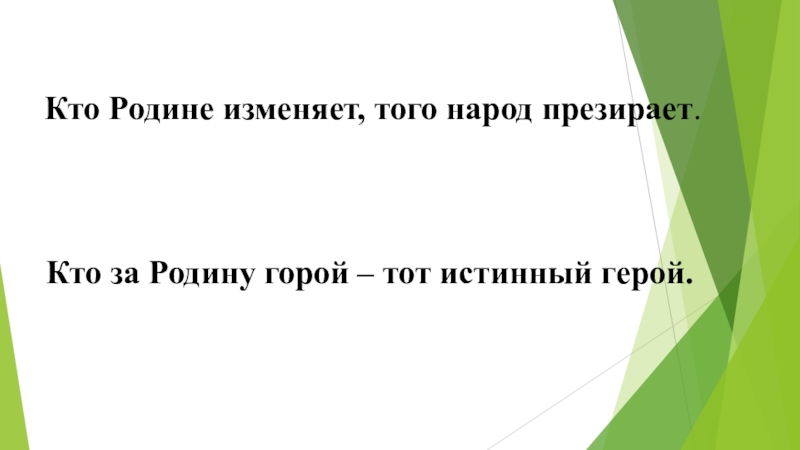 Кто Родине изменяет, того народ презирает.   Кто за Родину горой – тот истинный герой.