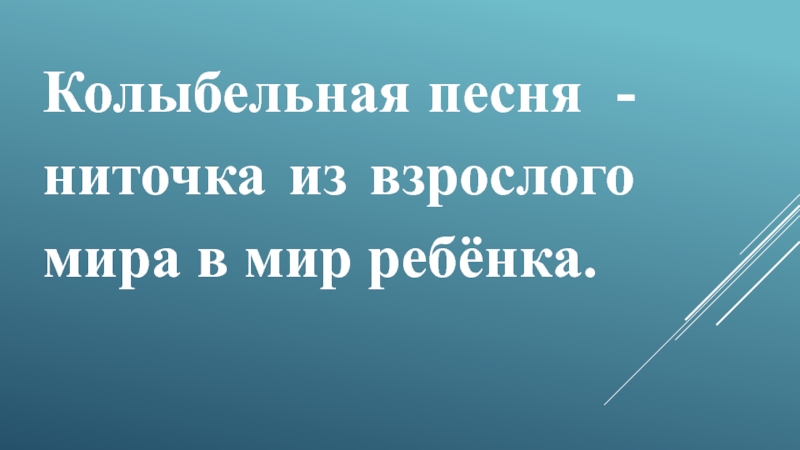 Слайд 4Колыбельная песня - ниточка из взрослого мира в мир ребёнка.