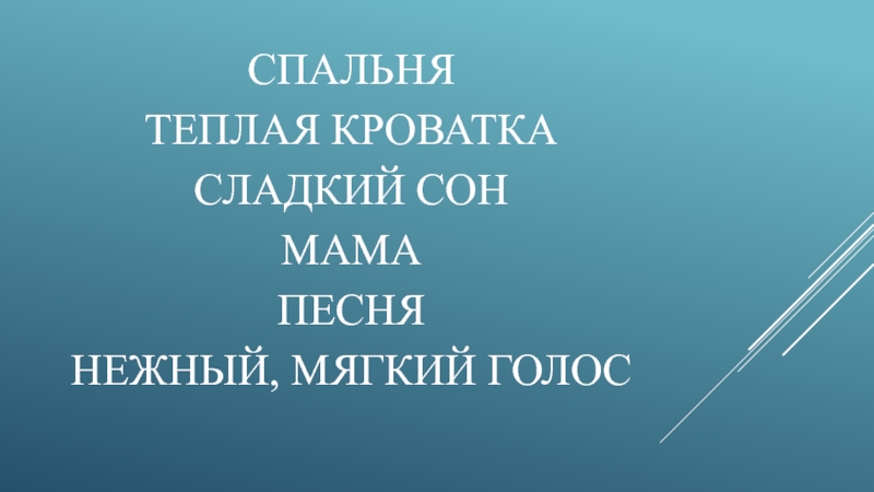 СПАЛЬНЯТЕПЛАЯ КРОВАТКАСЛАДКИЙ СОНМАМАПЕСНЯНЕЖНЫЙ, МЯГКИЙ ГОЛОС