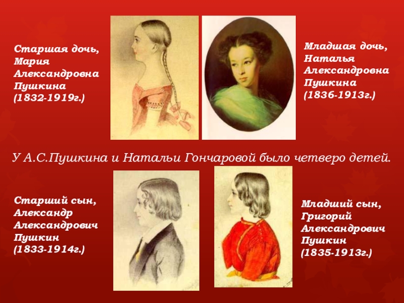 У А.С.Пушкина и Натальи Гончаровой было четверо детей.