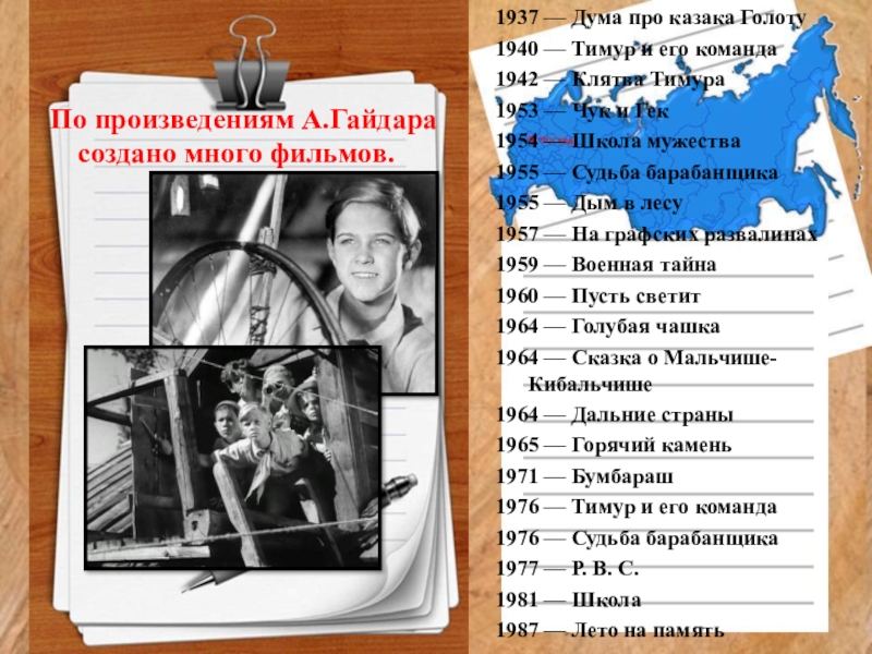 Слайд 33 По произведениям А.Гайдара