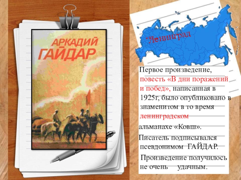 Писатель подписывался псевдонимом ГАЙДАР.