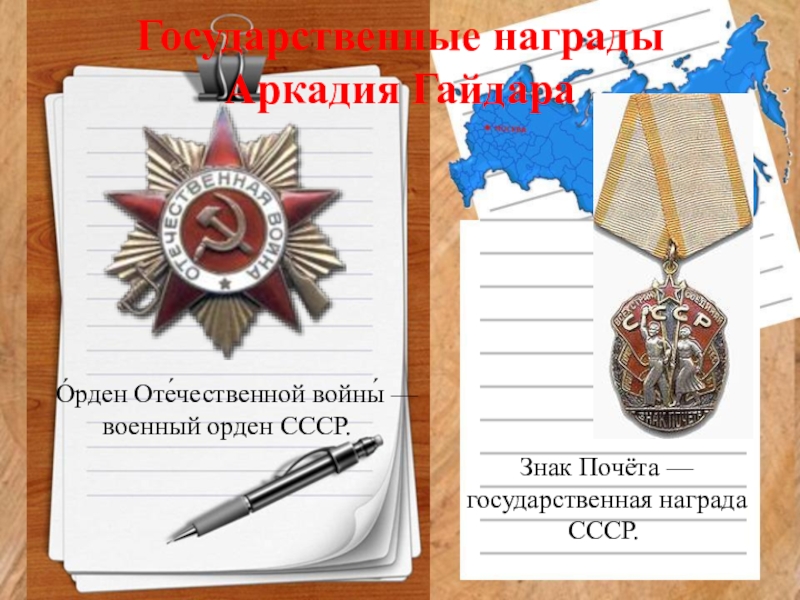 Слайд 32Государственные награды Аркадия Гайдара