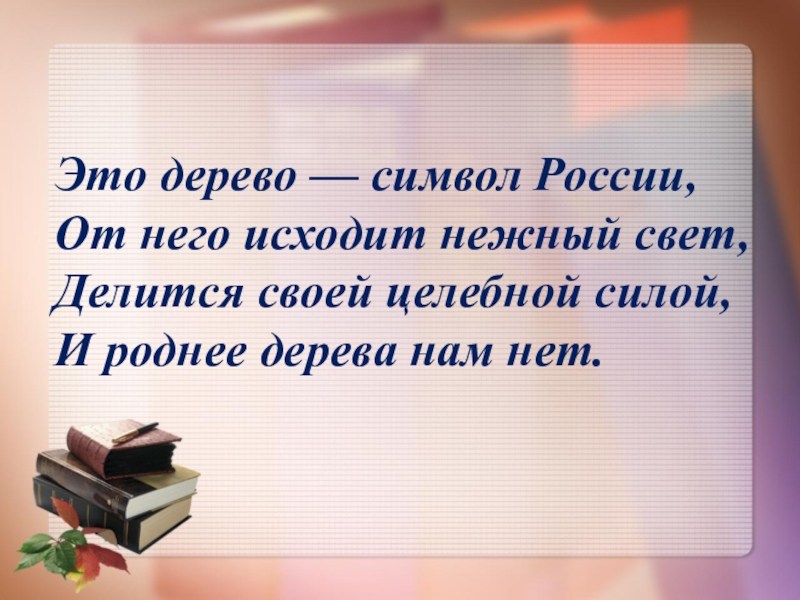Слайд 3Это дерево — символ России, От него исходит нежный свет, Делится своей целебной