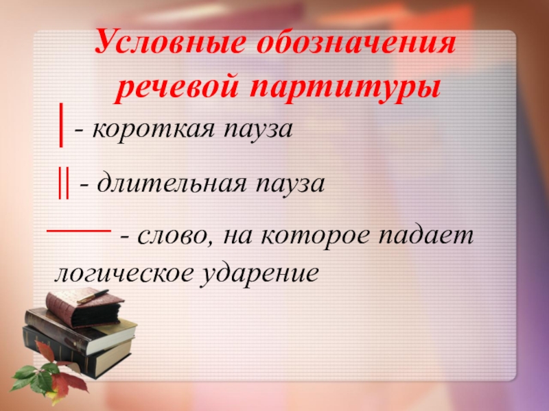 Условные обозначения  речевой партитуры| - короткая пауза|| - длительная пауза̶̶̶̶ ̶̶ ̶ ̶̶ ̶ - слово,