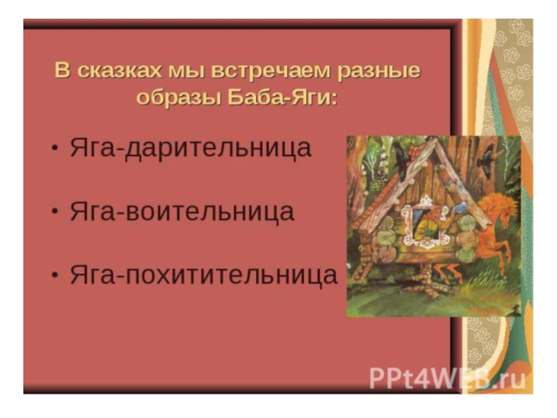Презентация к уроку литературного чтения Образ Бабы Яги в русских народных сказках Детские презентации