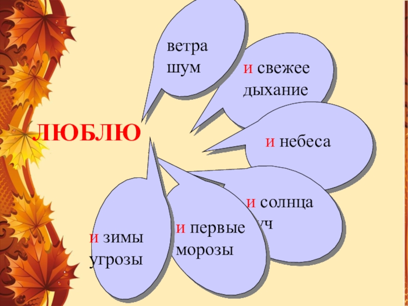 ЛЮБЛЮи свежее дыханиеи небесаи солнца лучи первые морозыи зимы угрозыветра шум