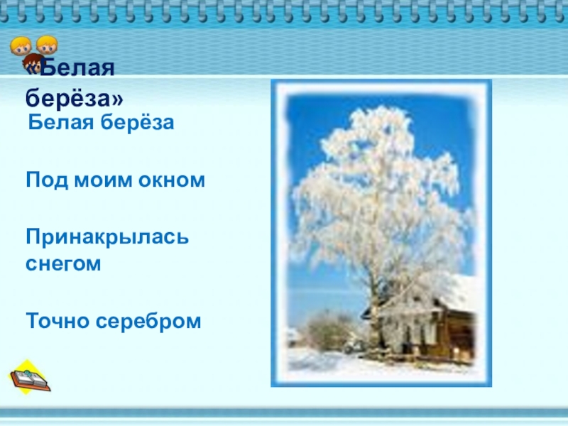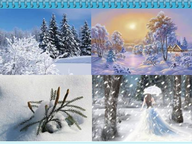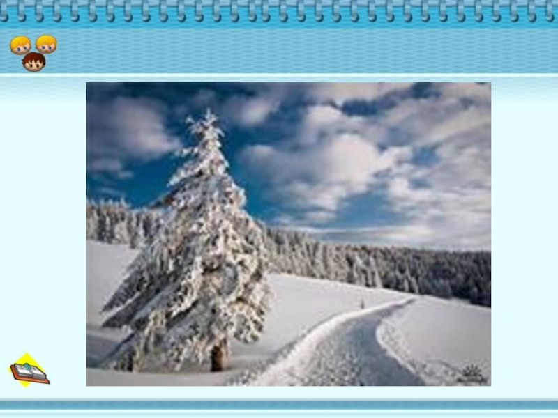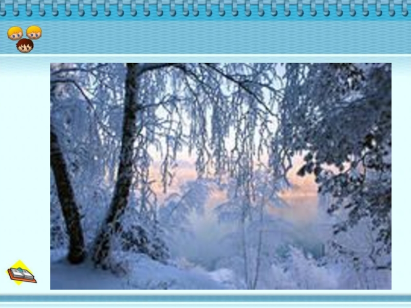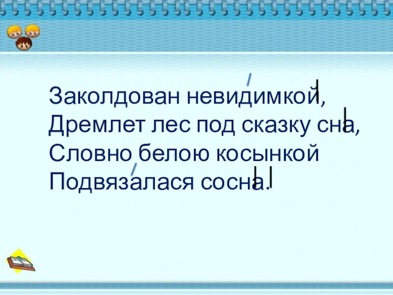 Слайд 13Заколдован невидимкой, Дремлет лес под сказку сна, Словно белою косынкой Подвязалася сосна.
