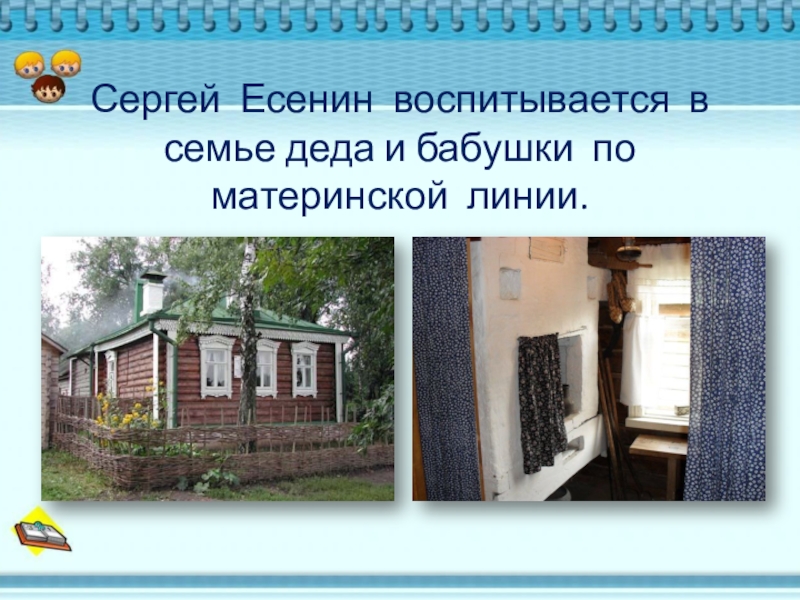 Слайд 6 Сергей Есенин воспитывается в семье деда и бабушки по материнской линии.