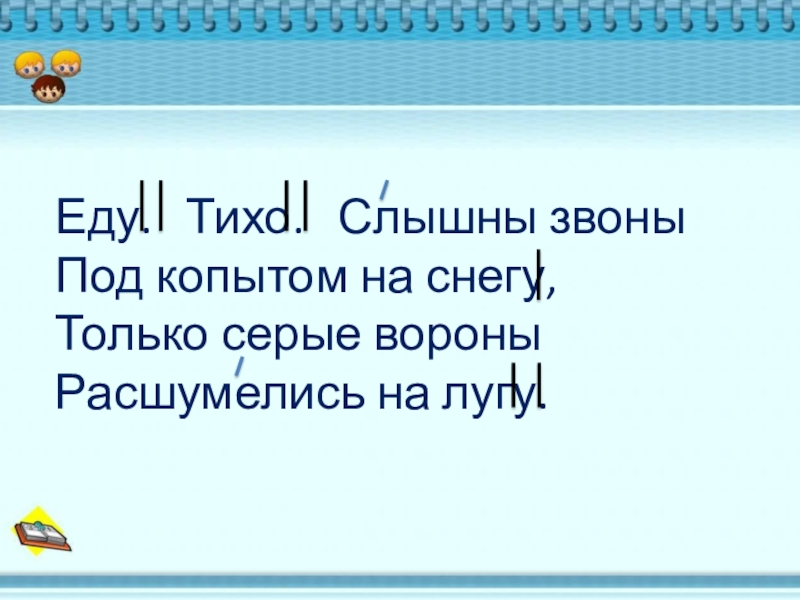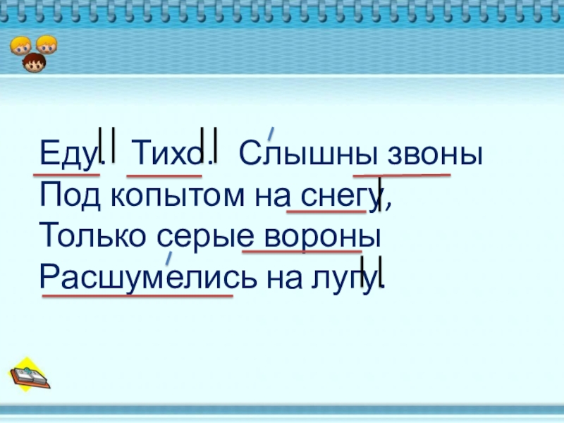 Еду.  Тихо.  Слышны звоны Под копытом на снегу, Только серые вороны Расшумелись на