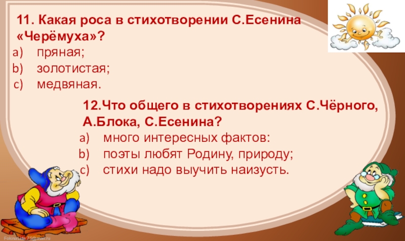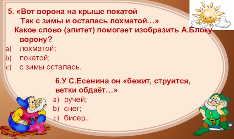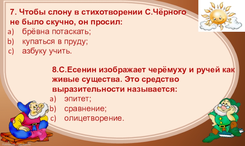 8.С.Есенин изображает черёмуху и ручей как живые существа. Это средство выразительности называется: