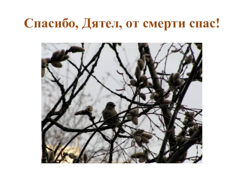 Слайд 11Спасибо, Дятел, от смерти спас!
