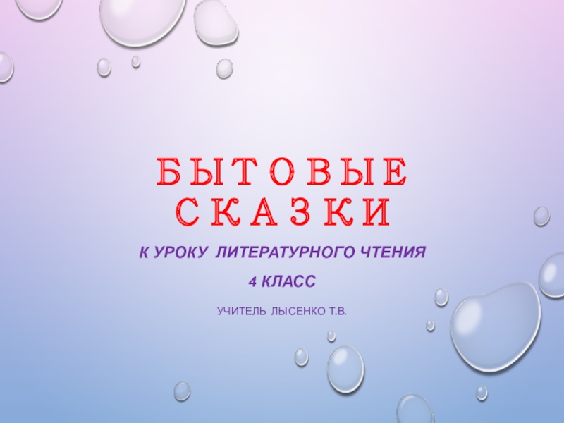 Бытовые сказкиК Уроку литературного чтения4 классУчитель Лысенко Т.В.