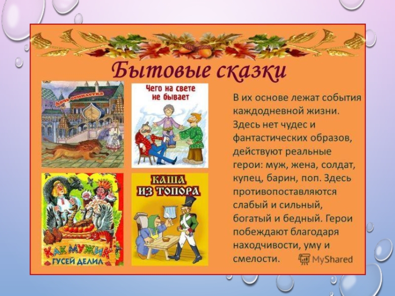 Презентация, доклад к уроку литературного чтения по теме Бытовые сказки