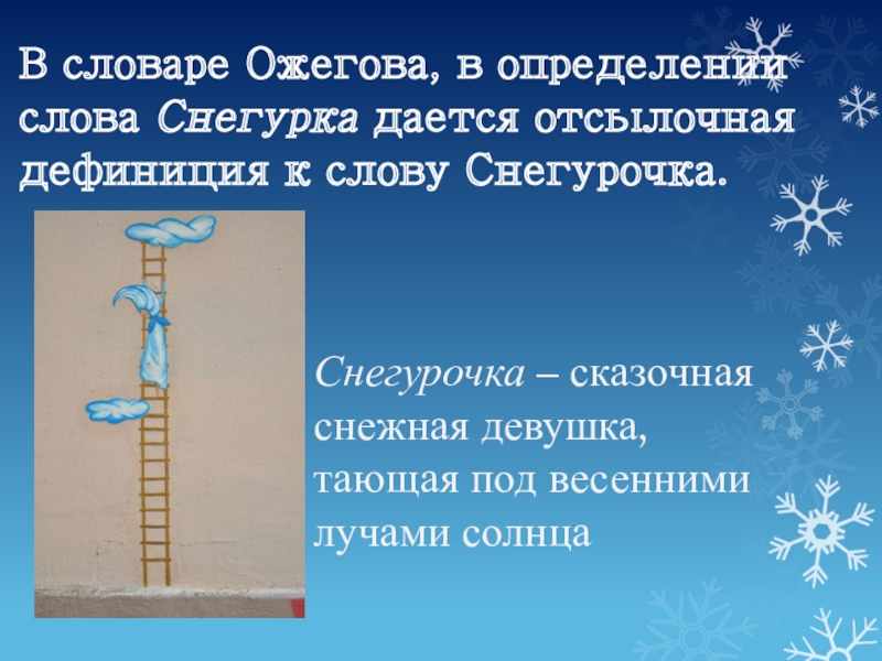 Слайд 6В словаре Ожегова, в определении слова Снегурка дается отсылочная дефиниция к