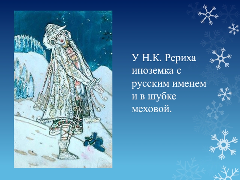 Слайд 14У Н.К. Рериха иноземка с русским именем и в шубке меховой.
