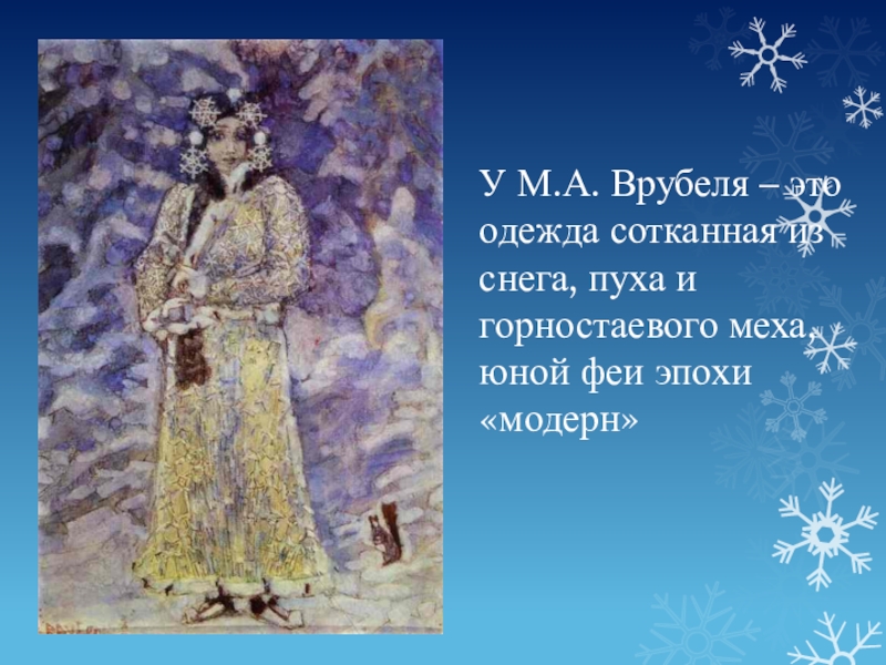 Слайд 13У М.А. Врубеля – это одежда сотканная из снега, пуха и