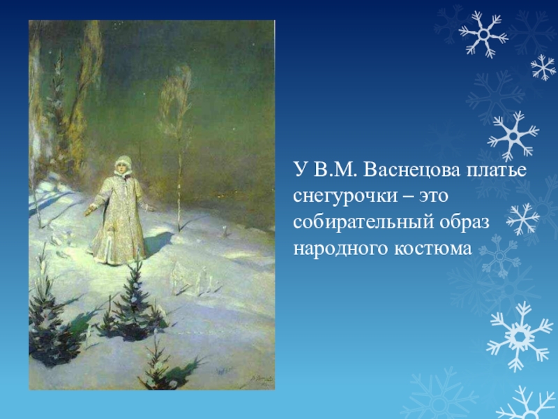 Слайд 12У В.М. Васнецова платье снегурочки – это собирательный образ народного костюма