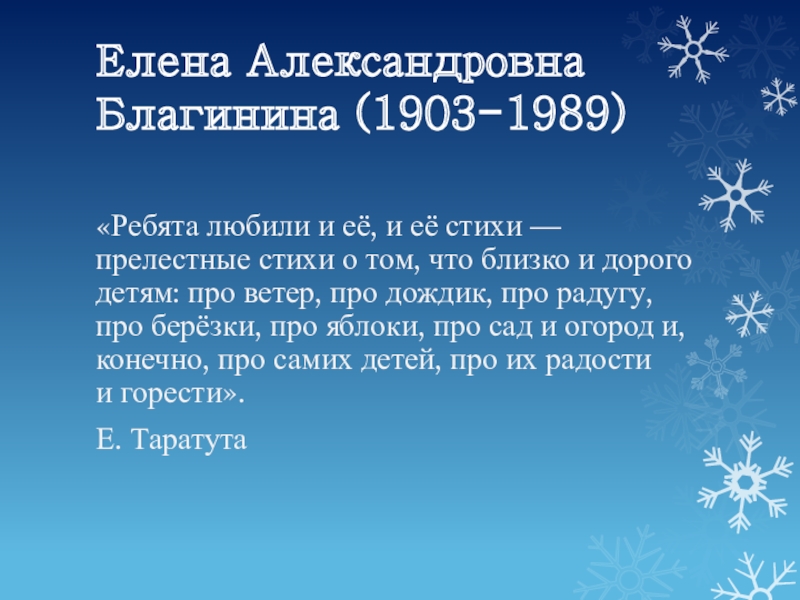 Слайд 3Елена Александровна Благинина (1903-1989)