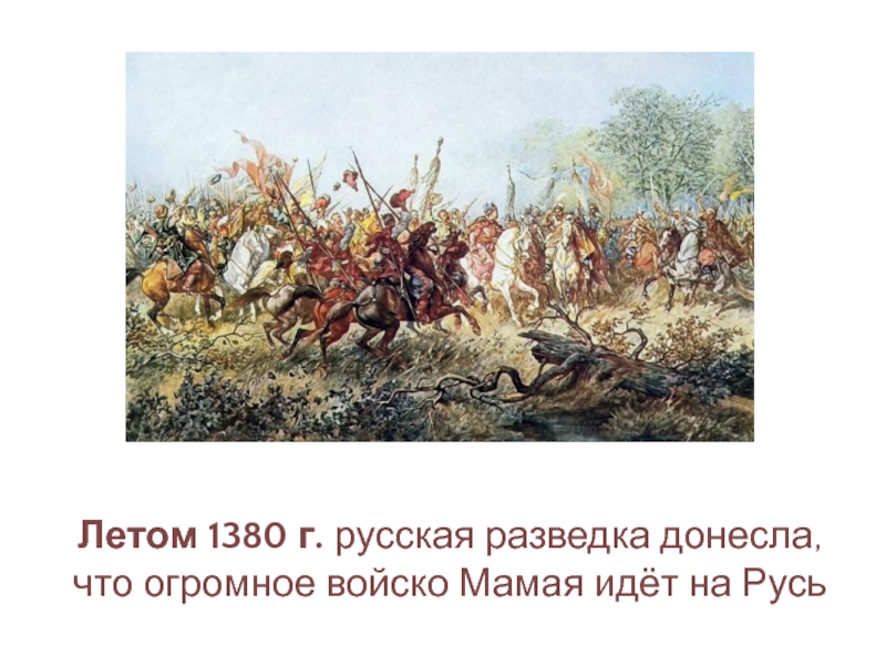 Летом 1380 г. русская разведка донесла, что огромное войско Мамая идёт на Русь