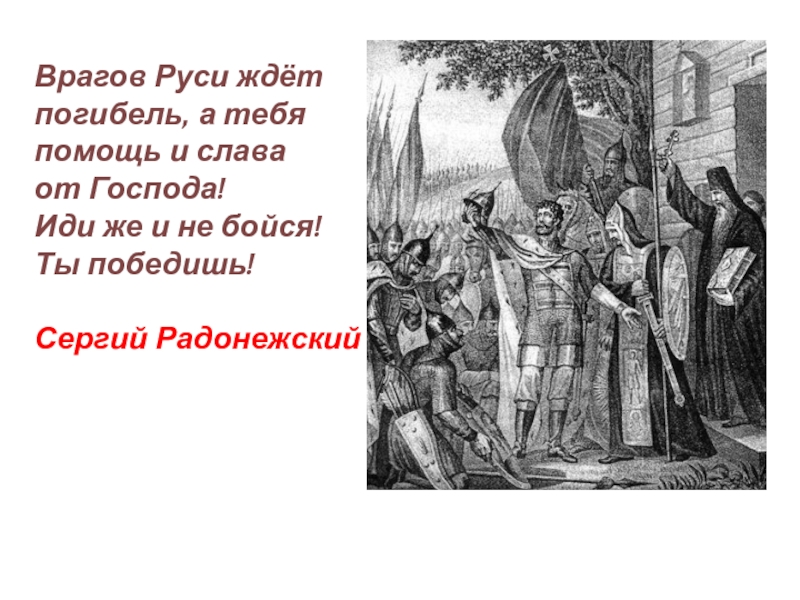 Врагов Руси ждёт погибель, а тебя помощь и слава от Господа! Иди же и не бойся! Ты