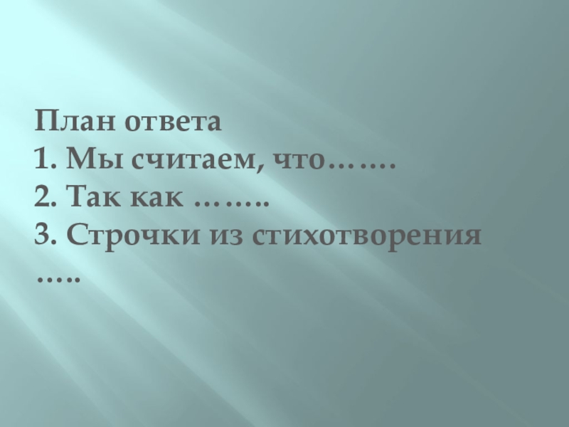План ответа 1. Мы считаем, что……. 2. Так как …….. 3. Строчки из стихотворения …..