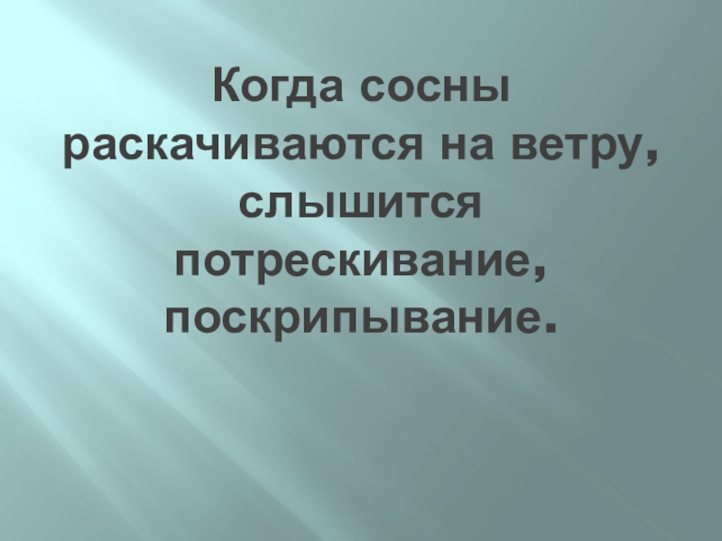 Слайд 7Когда сосны раскачиваются на ветру, слышится потрескивание, поскрипывание.