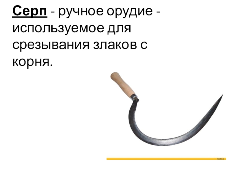 Серп - ручное орудие - используемое для срезывания злаков с корня.