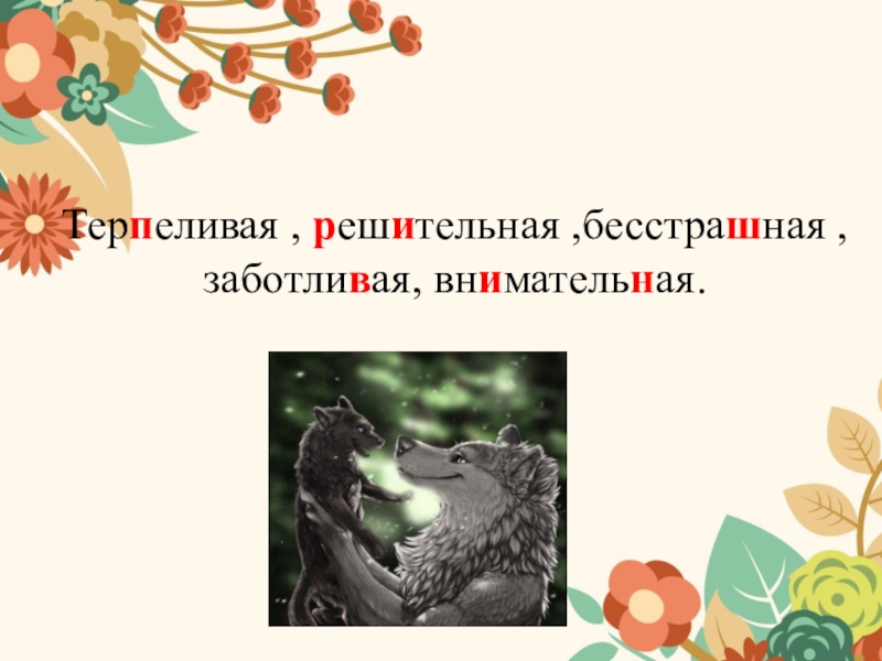 Слайд 5Терпеливая , решительная ,бесстрашная ,