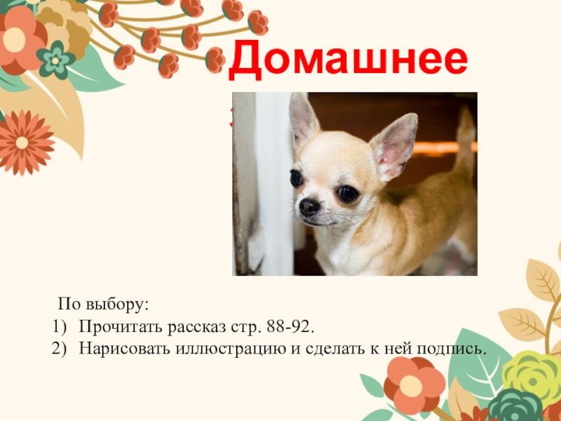 Домашнее задание :По выбору:Прочитать рассказ стр. 88-92.Нарисовать иллюстрацию и сделать к ней подпись.