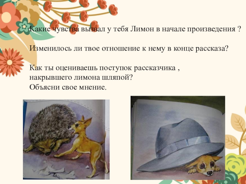 Слайд 15Какие чувства вызвал у тебя Лимон в начале произведения ?