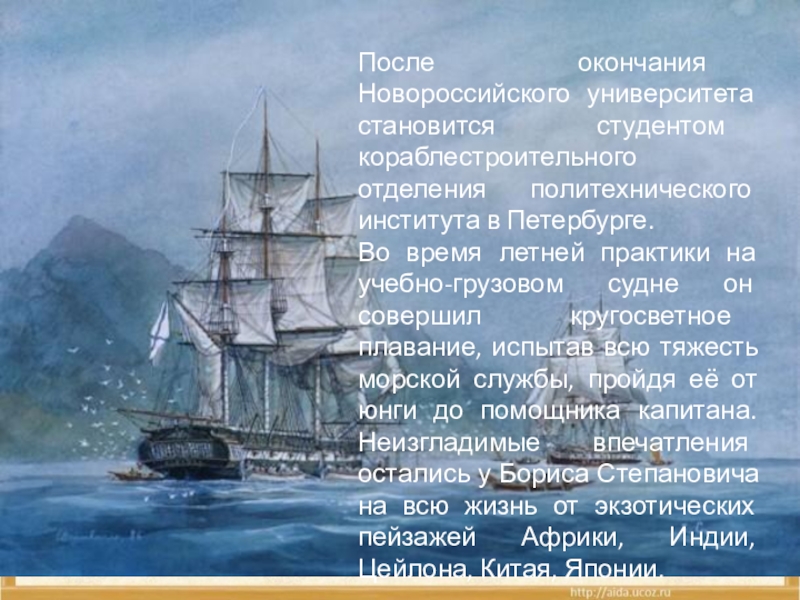 Слайд 6После окончания Новороссийского университета становится студентом кораблестроительного отделения политехнического института в