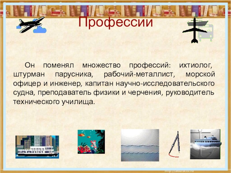 и инженер, капитан научно-исследовательского судна, преподаватель физики и черчения, руководитель технического училища.