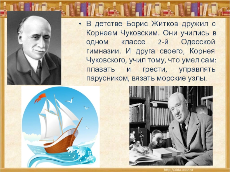 Слайд 5В детстве Борис Житков дружил с Корнеем Чуковским. Они учились в