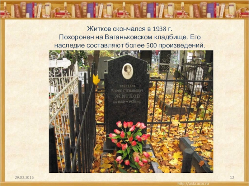 Слайд 12Житков скончался в 1938 г.