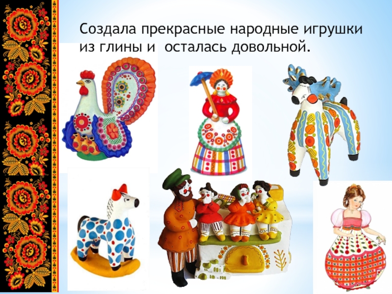 Слайд 4Создала прекрасные народные игрушки