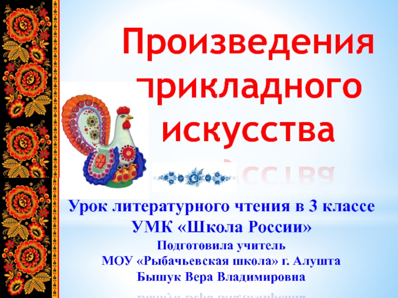 Произведенияприкладного искусстваУрок литературного чтения в 3 классе УМК «Школа России»Подготовила учитель МОУ «Рыбачьевская школа» г. Алушта Бышук