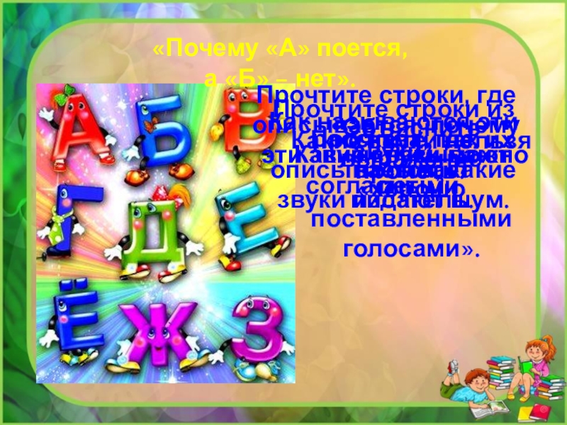 Прочтите строки, где описывается, почему эти звуки называют согласными.