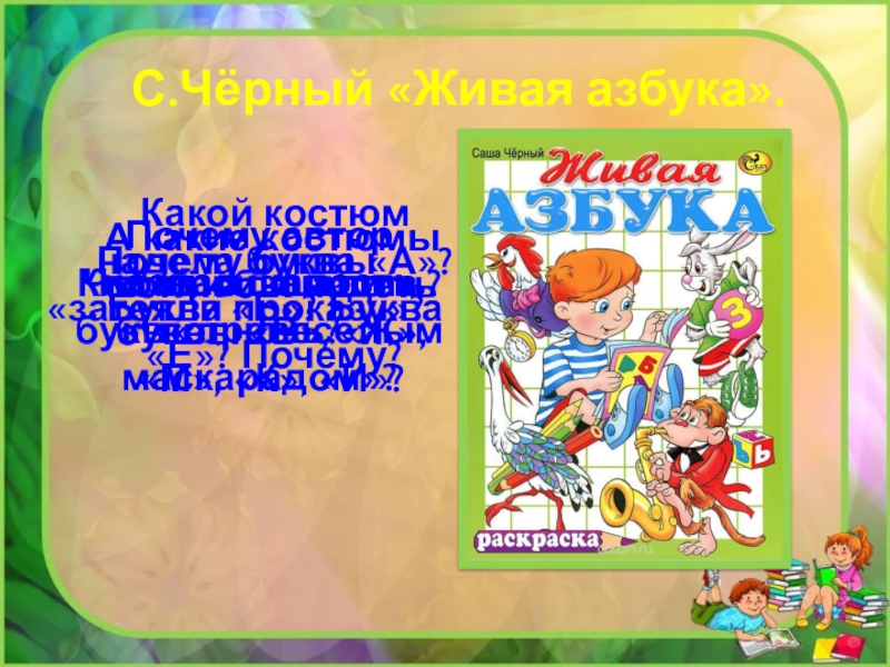 Какой костюм надела буква «А»? Буква «Б»? Буква «Е»? Почему?
