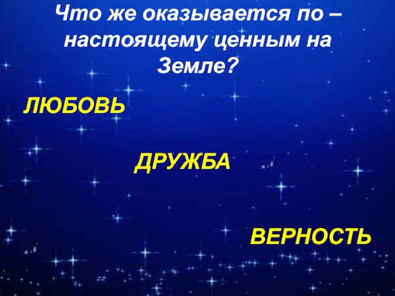 Что же оказывается по – настоящему ценным на Земле?ЛЮБОВЬ