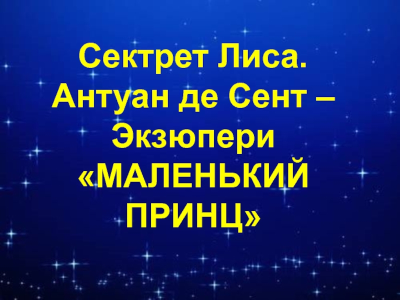 Презентация, доклад к уроку литературного чтения Секрет Лиса (Маленький принц, А де Сент Экзюпери)