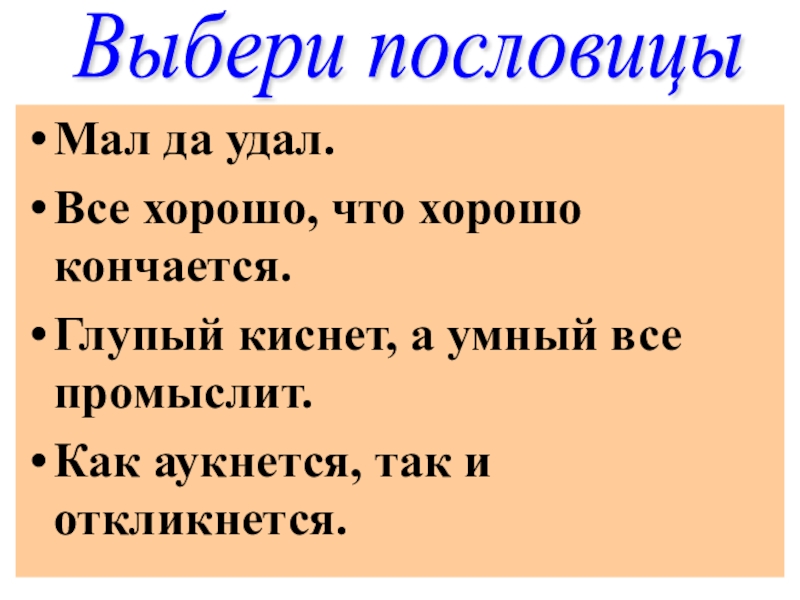 Выбери пословицы