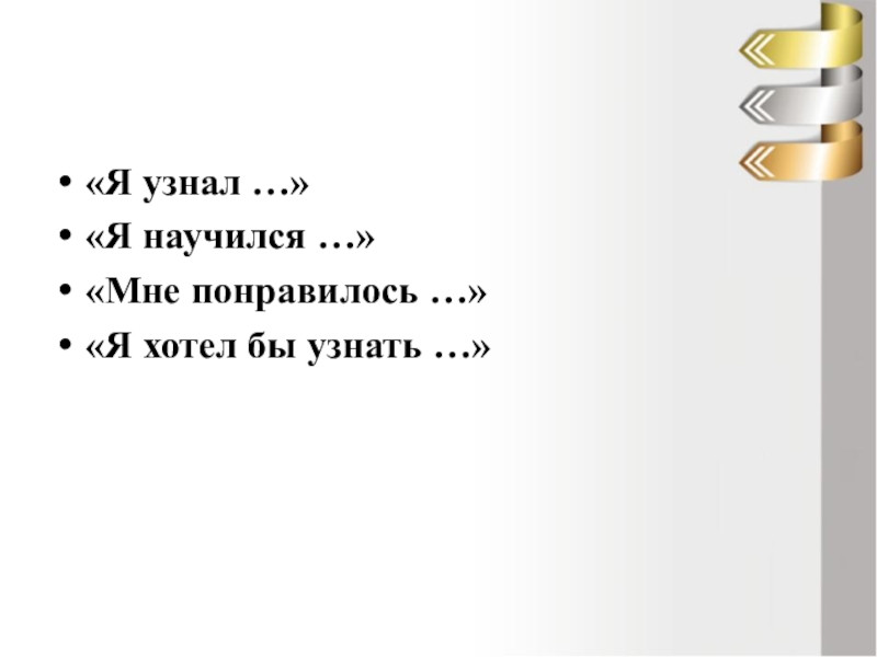 «Я узнал …»«Я научился …»«Мне понравилось …»«Я хотел бы узнать …»