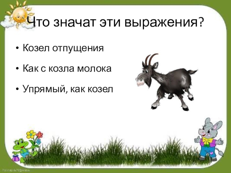 Что значат эти выражения?Козел отпущенияКак с козла молокаУпрямый, как козел