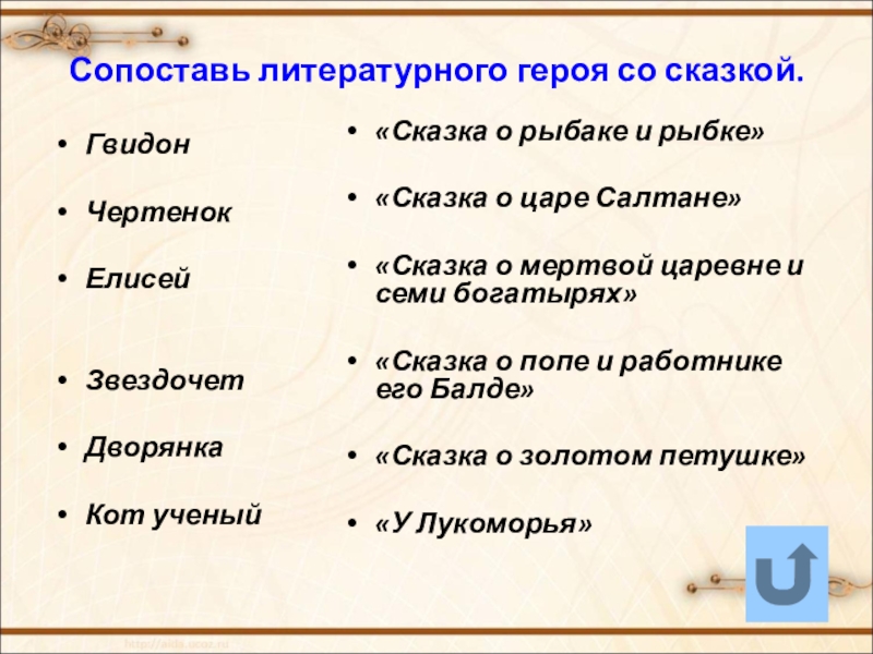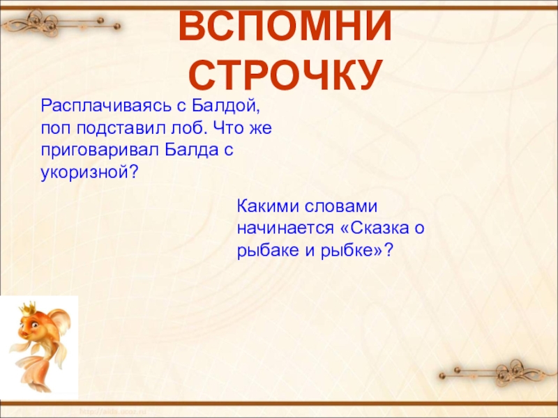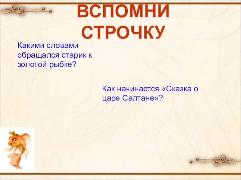 «Сказка о рыбаке и рыбке»).