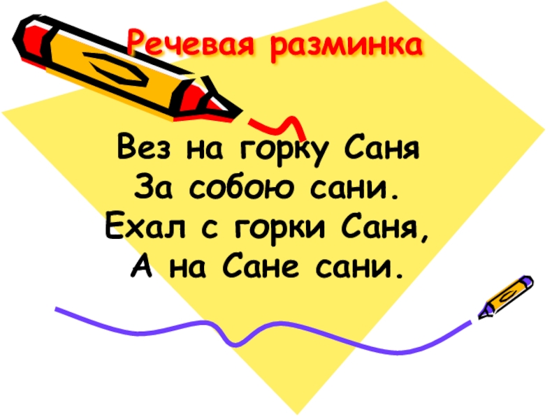 Речевая разминка Вез на горку СаняЗа собою сани.Ехал с горки Саня,А на Сане сани.