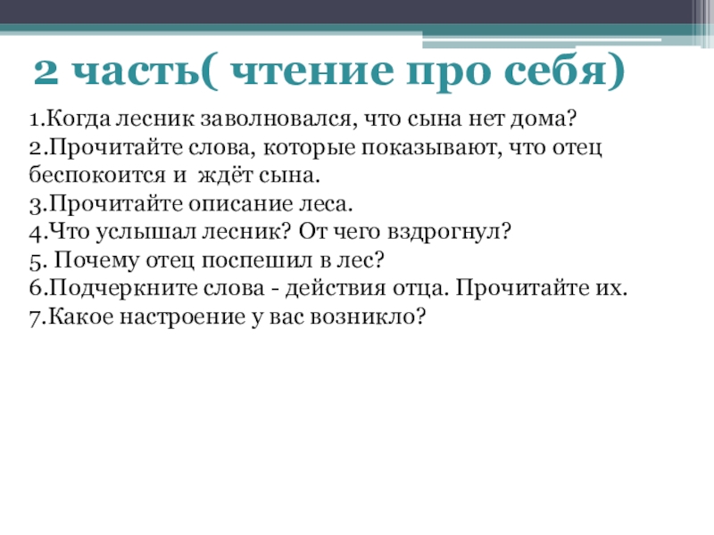 Слайд 132 часть( чтение про себя)