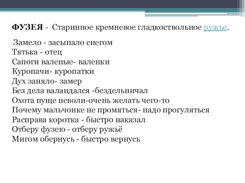 Слайд 12ФУЗЕЯ - Старинное кремневое гладкоствольное ружье.